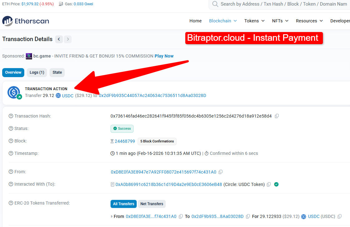 $29.12 Usdc Instantly got from - Bitraptor.cloud